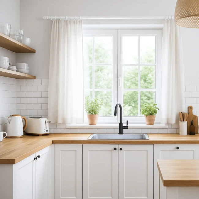 W celu doboru odpowiedniej długości drążka karnisza, zaleca się aby był on szerszy od wnęki okiennej minimum o 40 cm (20 cm na każdą stronę).