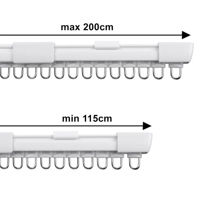 - Dzięki konstrukcji teleskopowej możesz dopasować idealną długość szyny do rozmiaru okna i pomieszczenia