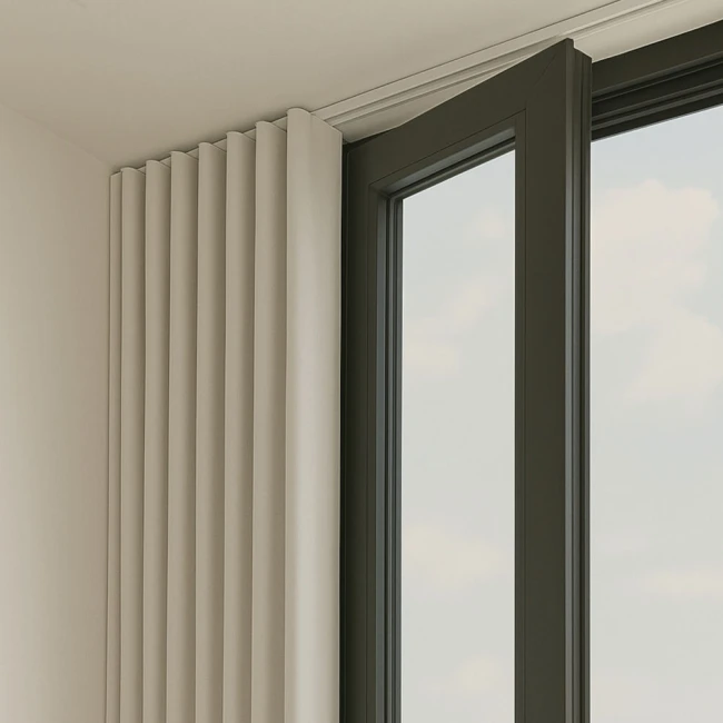 - Pełna uniwersalność – od firan, przez zasłony, po dekoracje – jeden karnisz, wiele zastosowań