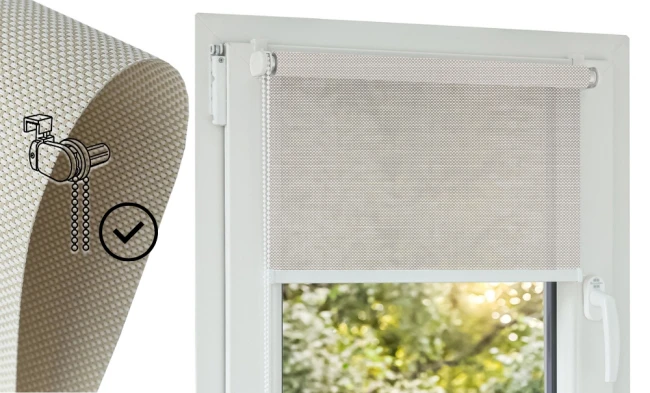 • Boczne mechanizmy rolety skręcone są belką nośną PCV, zapewnia to sztywność rolety, zabezpiecza przed rozszerzaniem się mechanizmów i spadaniem rolet
