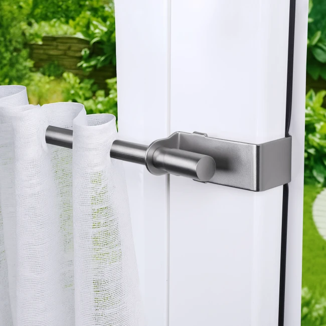 - Montaż bezinwazyjny – uchwyty wyposażone są w uniwersalny zacisk, który łatwo dopasowuje się do grubości ramy okiennej. Dzięki temu montaż jest szybki, trwały i nie powoduje uszkodzeń.