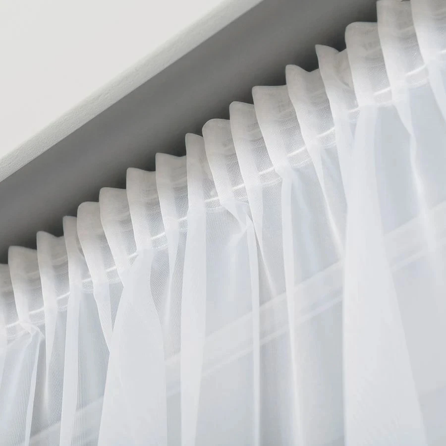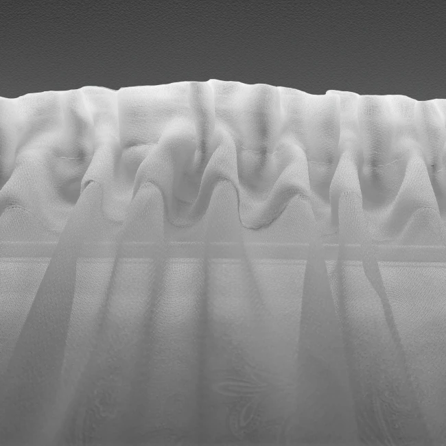 - Na górze firany została wszyta taśma marszcząca wraz z tunelem na karnisz rurkowy