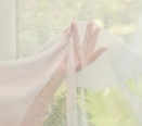 - Boki i dół firany wykończone podwinięciem, zapewniającym efektowne układnie się tkaniny.