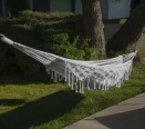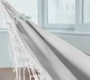 - Stylowe frędzle w klimacie boho, które dodają hamakowi unikalnego charakteru