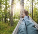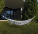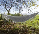 - Miękki materiał hamaka otula i dopasowuje się do kształtu ciała, zapewniając maksymalny komfort podczas odpoczynku