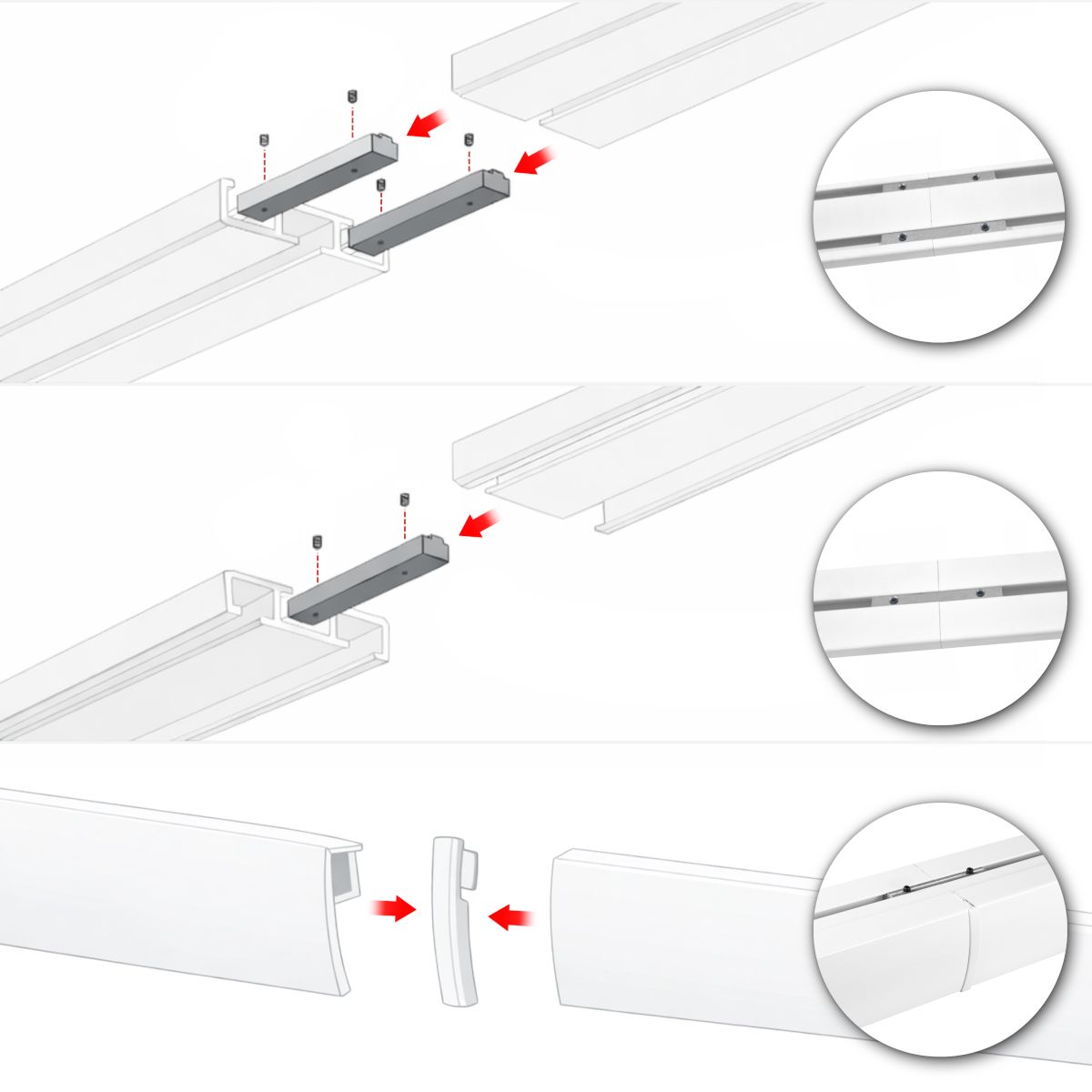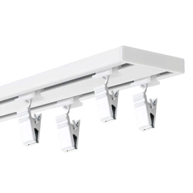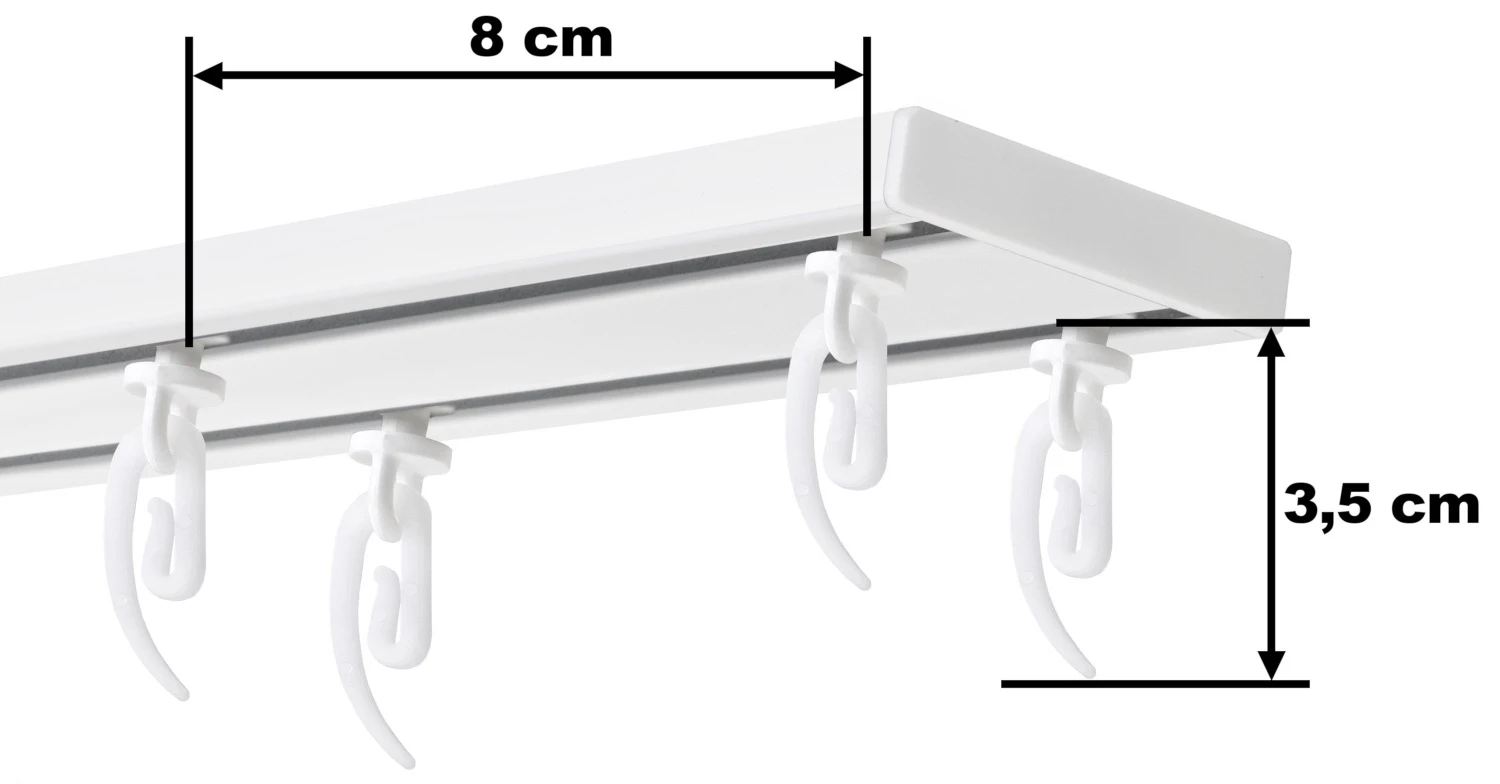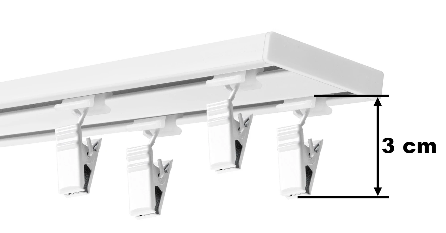 • szyna aluminiowa DUO (karnisze o długości do 250 cm dostarczamy w całości, a powyżej 250 cm w częściach np. karnisz 400 cm to 2 szyny o długości 200 cm)
