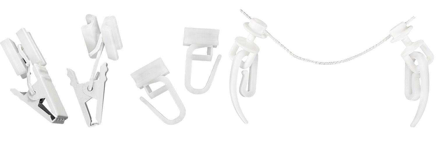 Przeznaczenie: bezpośrednio do zaczepienia o taśmę marszczącą wszytą w zasłonie. Dopasowany do taśmy Wave.