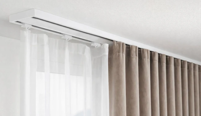 • Szyna aluminiowa duo wyróżnia się nie tylko estetyką, ale również praktycznością. Jej płaska konstrukcja sprawia, że jest niemal niewidoczna, skupiając uwagę na samych dekoracjach okna.