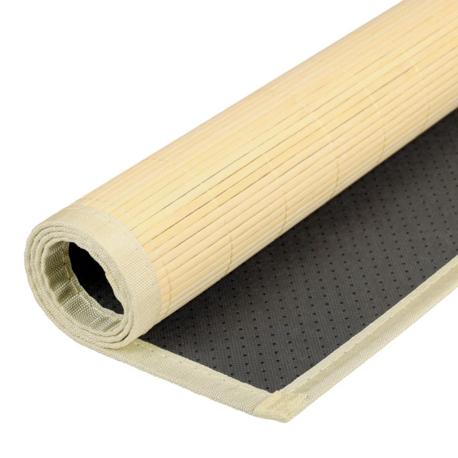 - Drewno bambusowe jest odporne na zabrudzenia, a jego struktura zapobiega widocznym smugom i plamom, dzięki czemu mata zawsze wygląda estetycznie
