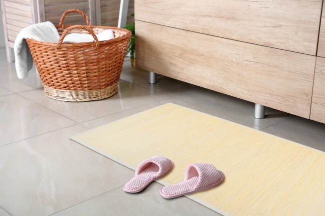 - Mata została wykonana z wysokiej jakości włókien bambusa, który charakteryzuje się odpornością na wilgoć i wytrzymałością, dzięki czemu idealnie sprawdzi się w miejscach takich jak łazienka, sauna czy kuchnia