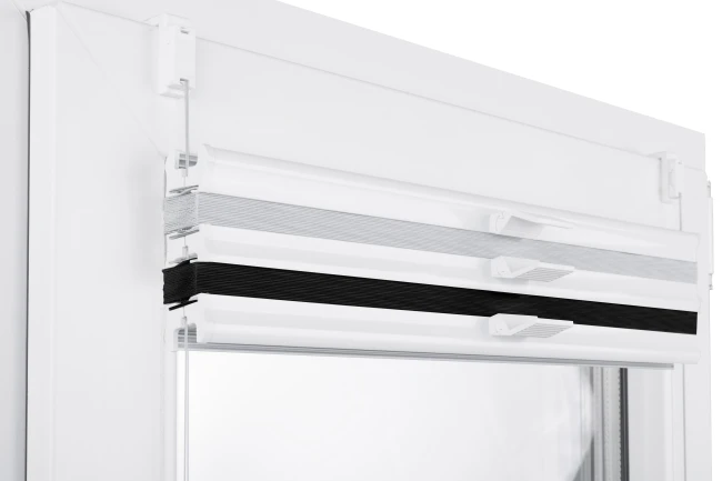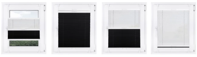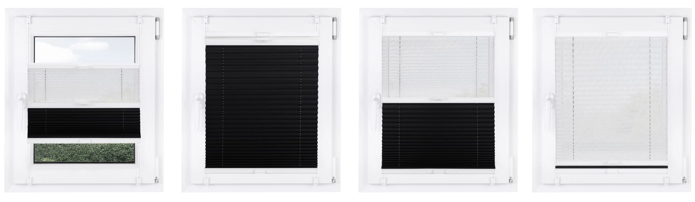 Dzięki zastosowaniu dwóch typów materiału w jednej plisie, możliwe jest wiele sposobów zasłonięcia okna: