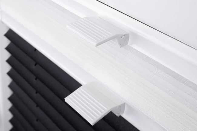 Plisę montujemy na oknie (bez wiercenia) za pomocą specjalnych uchwytów.
