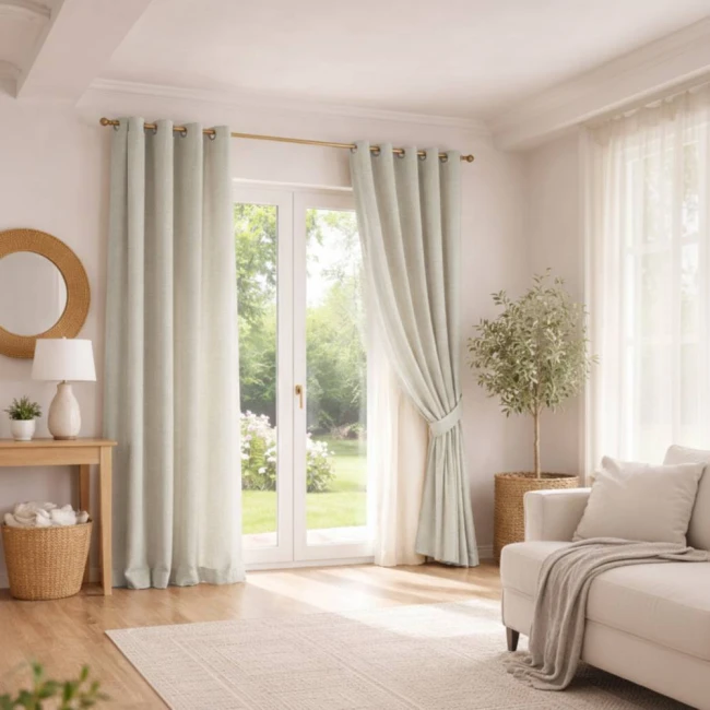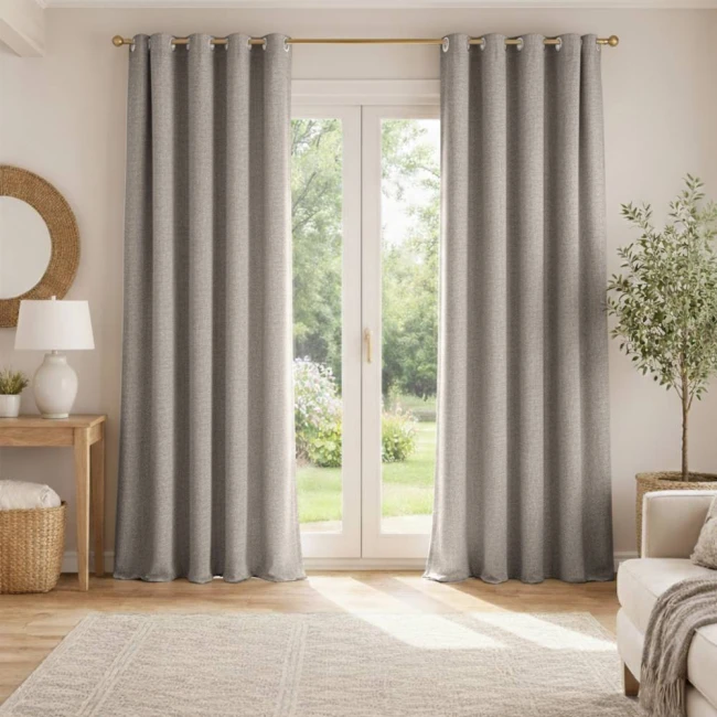 • Zasłona ma elegancką, „naturalną” strukturę przypominającą len, a dzięki poliestrowej tkaninie jest bardziej wytrzymała